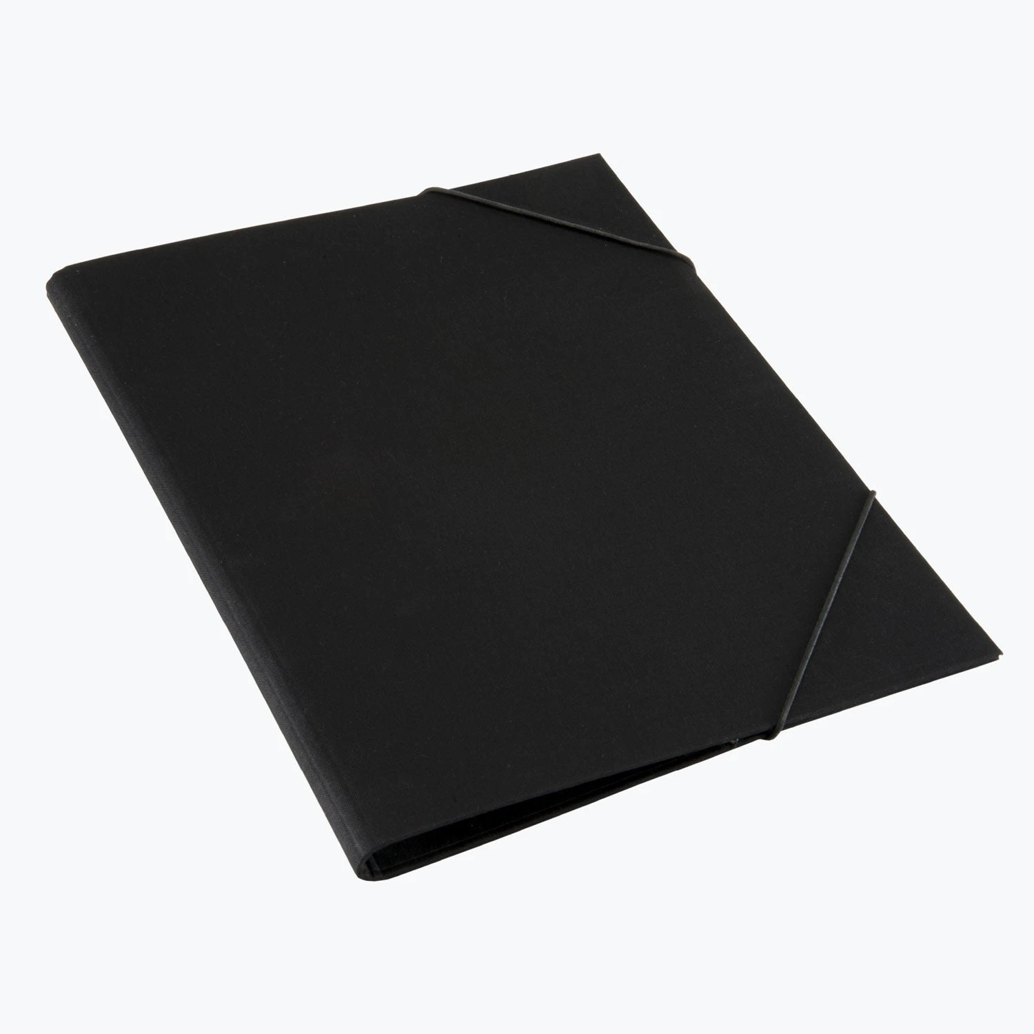 This functional and stylish cloth covered Bookbinders Design folder is perfect for filing or carrying around documents. The folder has a rounded spine and is held closed by elastic that wraps around the corners.Â