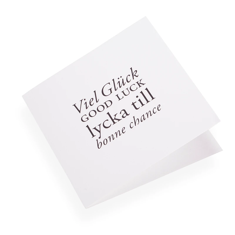 Folded card with elegant black foil embossing on 297g matte Swedish paper (100% cotton).