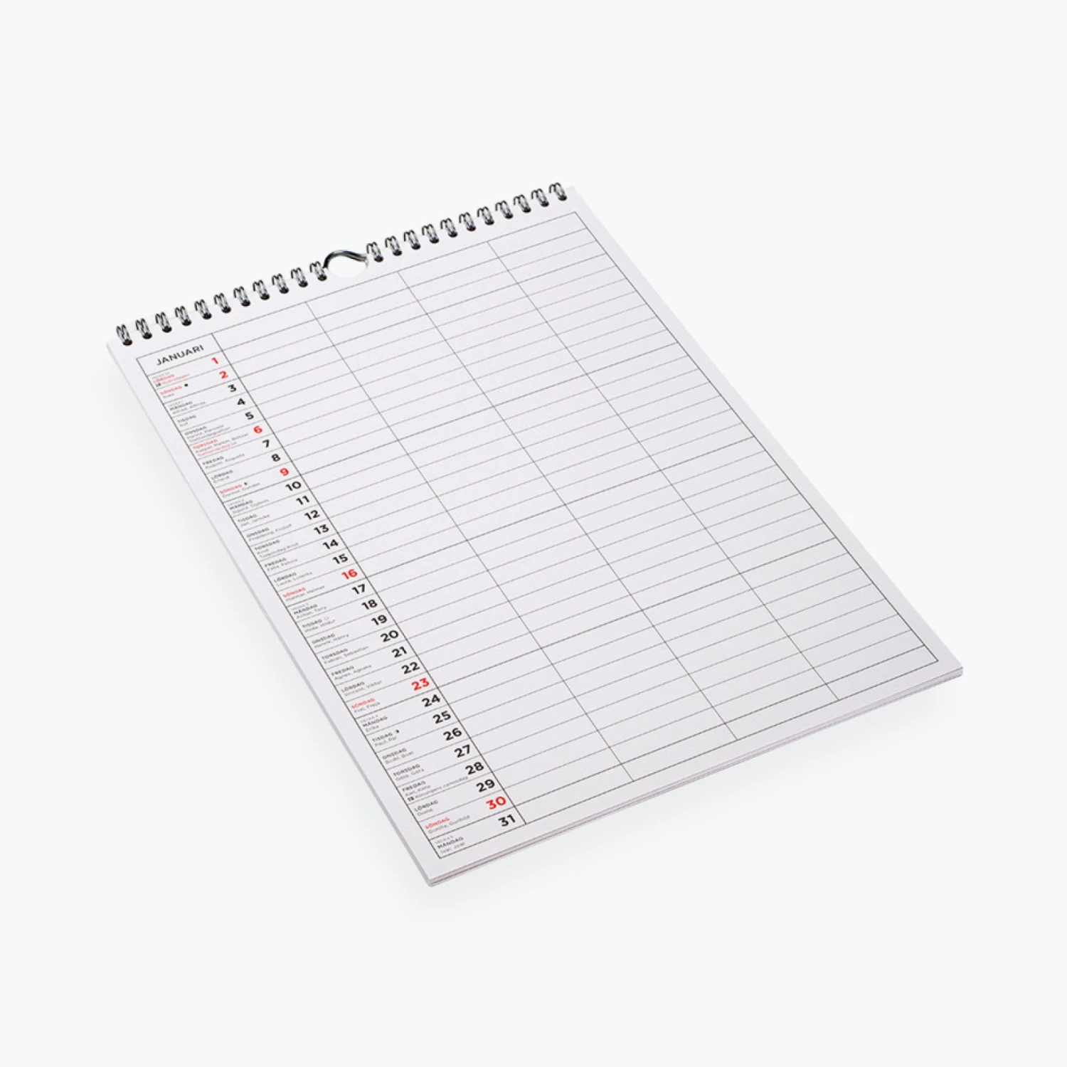 Bookbinders Design 2022 calendar is a new addition to the collection.ย The wall mounted plannerย comes withย 12 sheets of uncoated, acid-free 170gsm paper, with one sheet for each month.ย Everyย page features five columns – one for each family member.ย The cover is made of Swedish certified 400gsm paper with “22 WALL PLANNER” printed in white on the front.