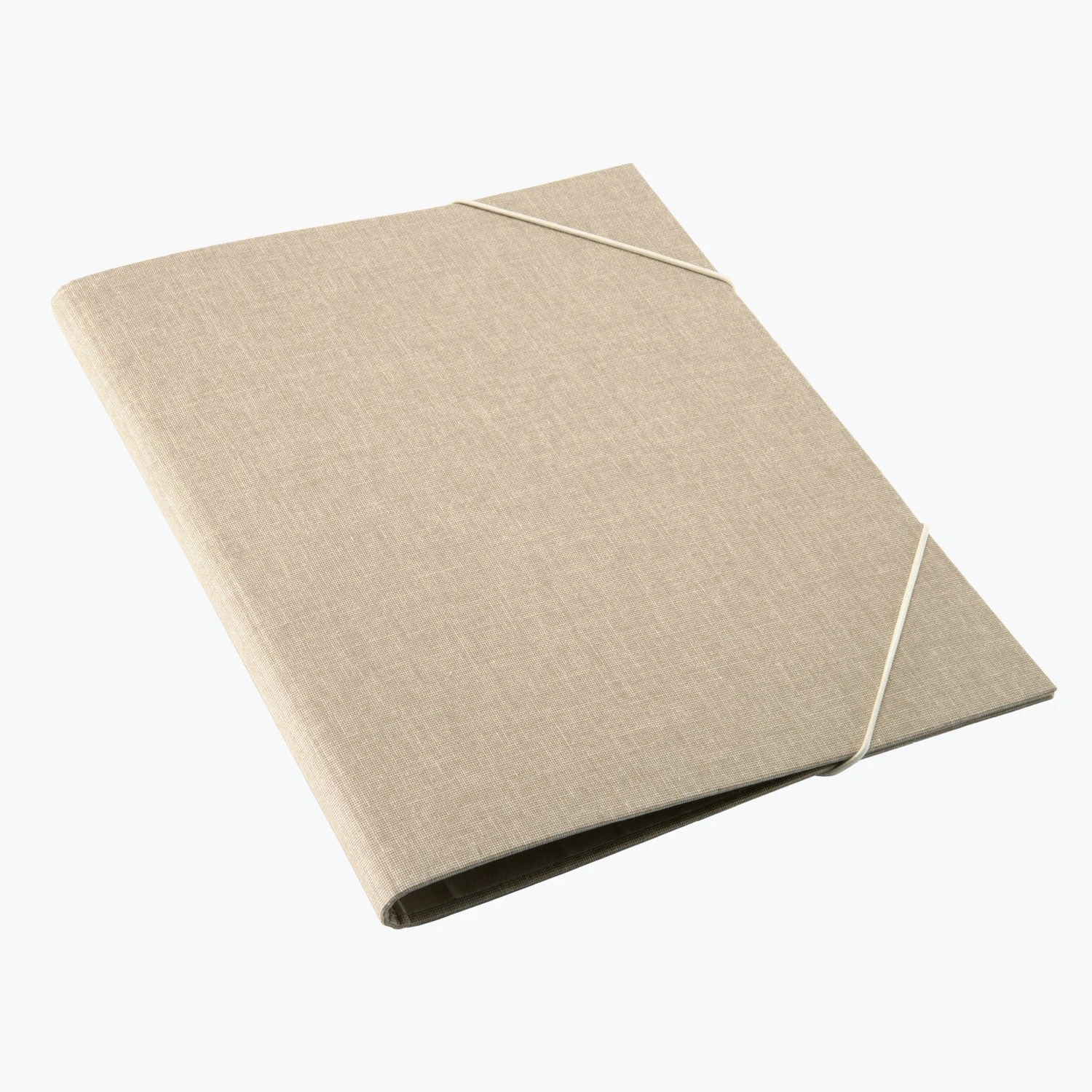 This functional and stylish cloth covered Bookbinders Design folder is perfect for filing or carrying around documents. The folder has a rounded spine and is held closed by elastic that wraps around the corners.Â
