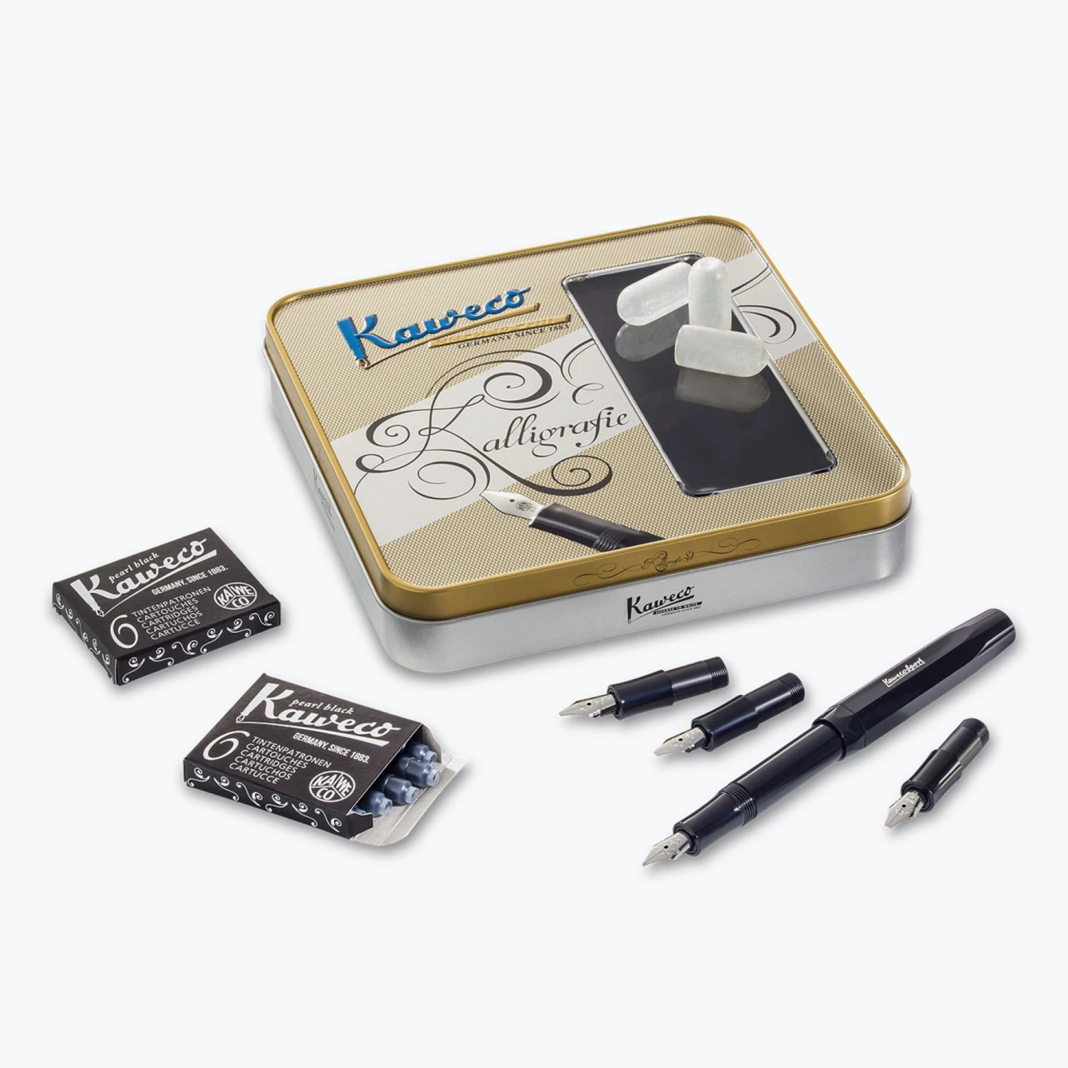 Create beautiful lettering with the Kaweco Calligraphy Pen Set, which comes in a metal gift box, making it perfect for starting out a collection or as a gift idea for someone else. The Kaweco Calligraphy Pen Set includes: