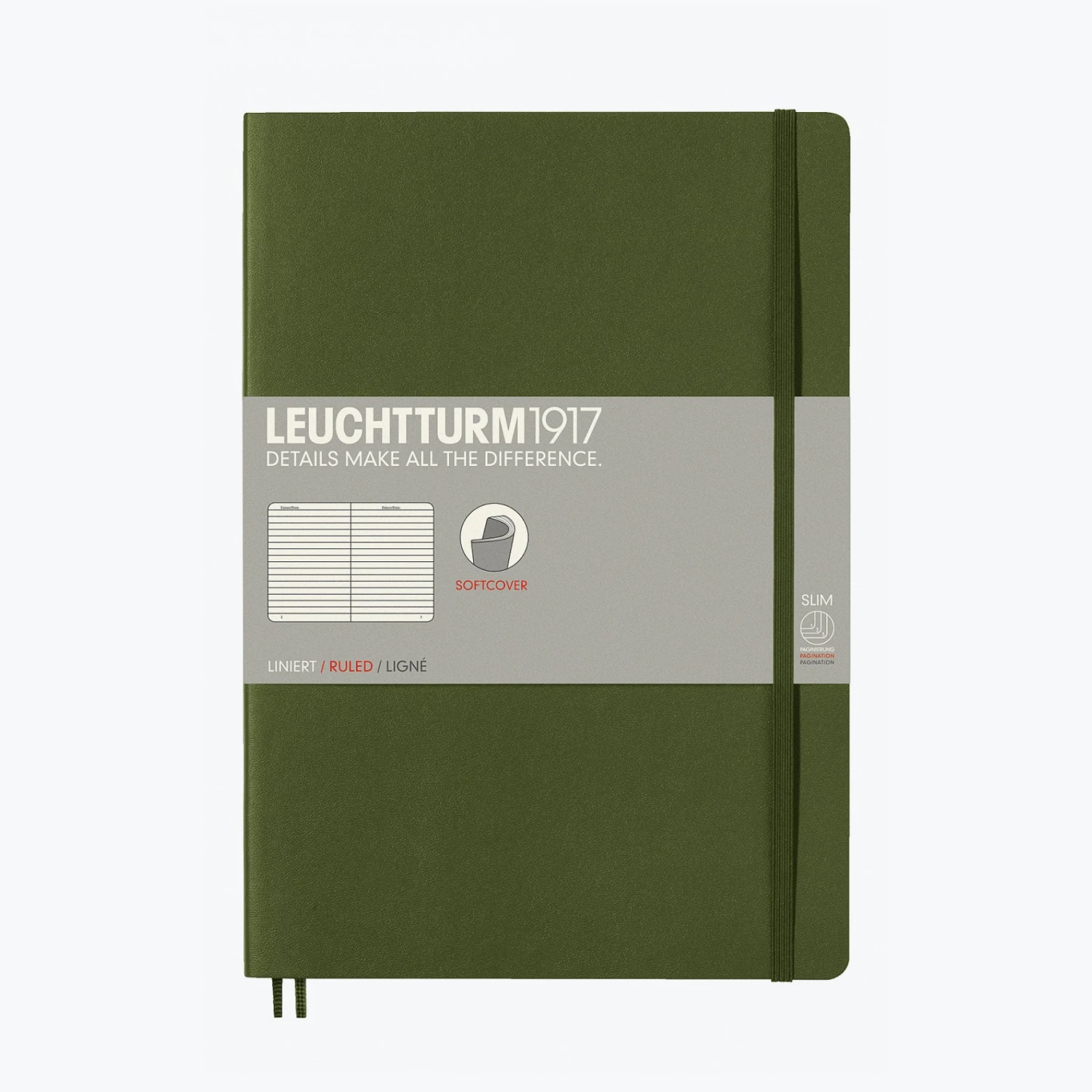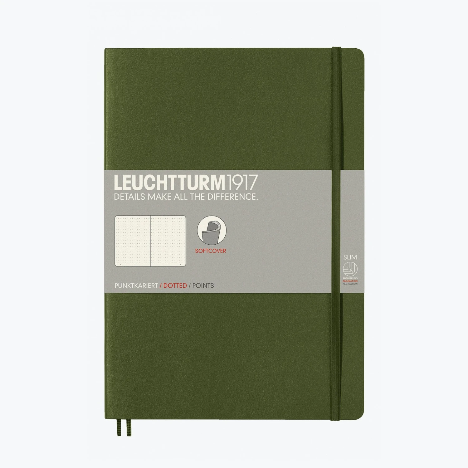 The army Leuchtturm1917 B5 is a simple yet sophisticated softcover notebook, making it an ideal companion for all walks of life. Softcover notebooks are lighter and more flexible but have the same great features.