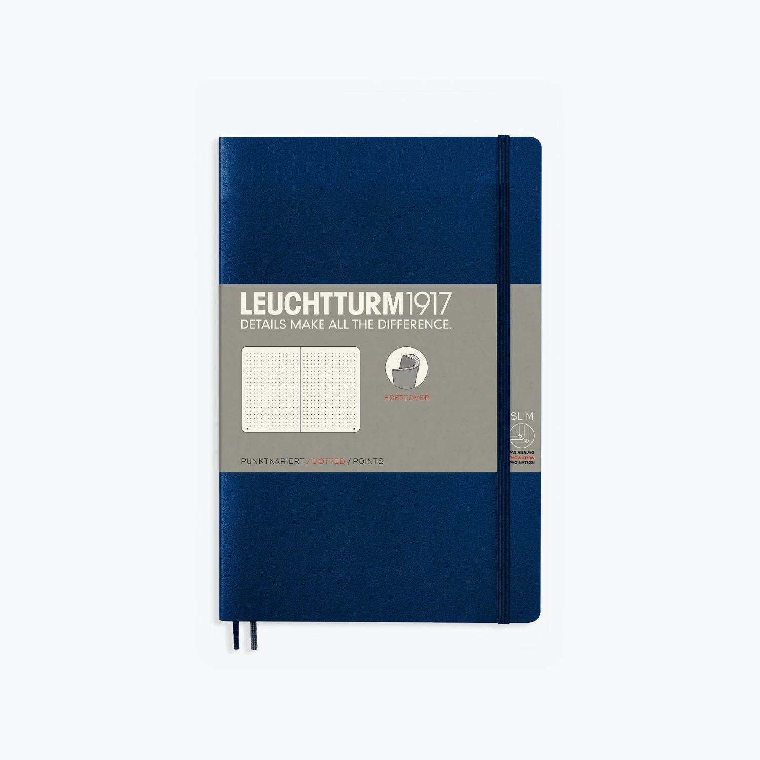 The navy Leuchtturm1917 B6+ is a simple yet sophisticated softcover notebook, making it an ideal companion for all walks of life. Softcover notebooks are lighter and more flexible but have the same great features.Â