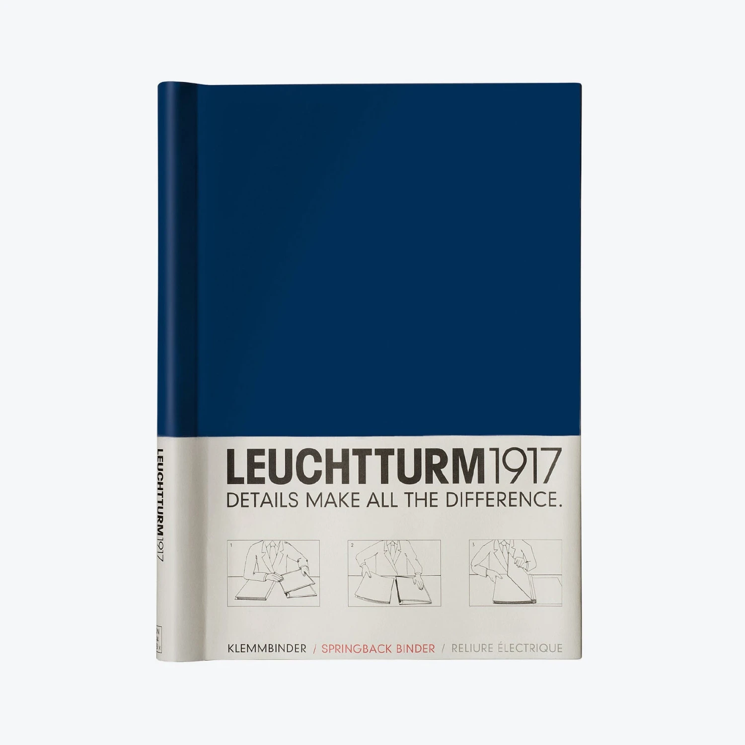 The navy Leuchtturm1917 springback binder is the perfect flexible binding solution. Loose papers can be easily filed without the need for holes or stitched binding. It is suitable for important documents, recipes, artworks and certificates.Â
