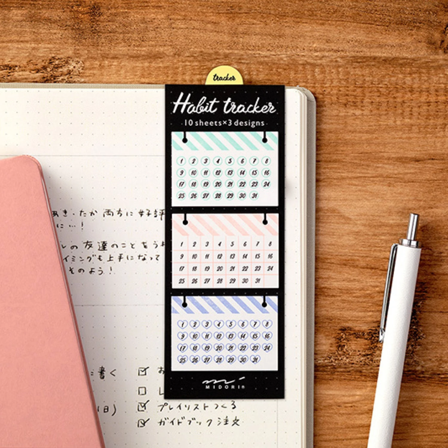 The Midori Habit Tracker stickers are perfect for tracking your daily success with your habits or goals. The sticky notes can be placed inside your planner, notebook or bullet journal to provide a visual overview of your progress.