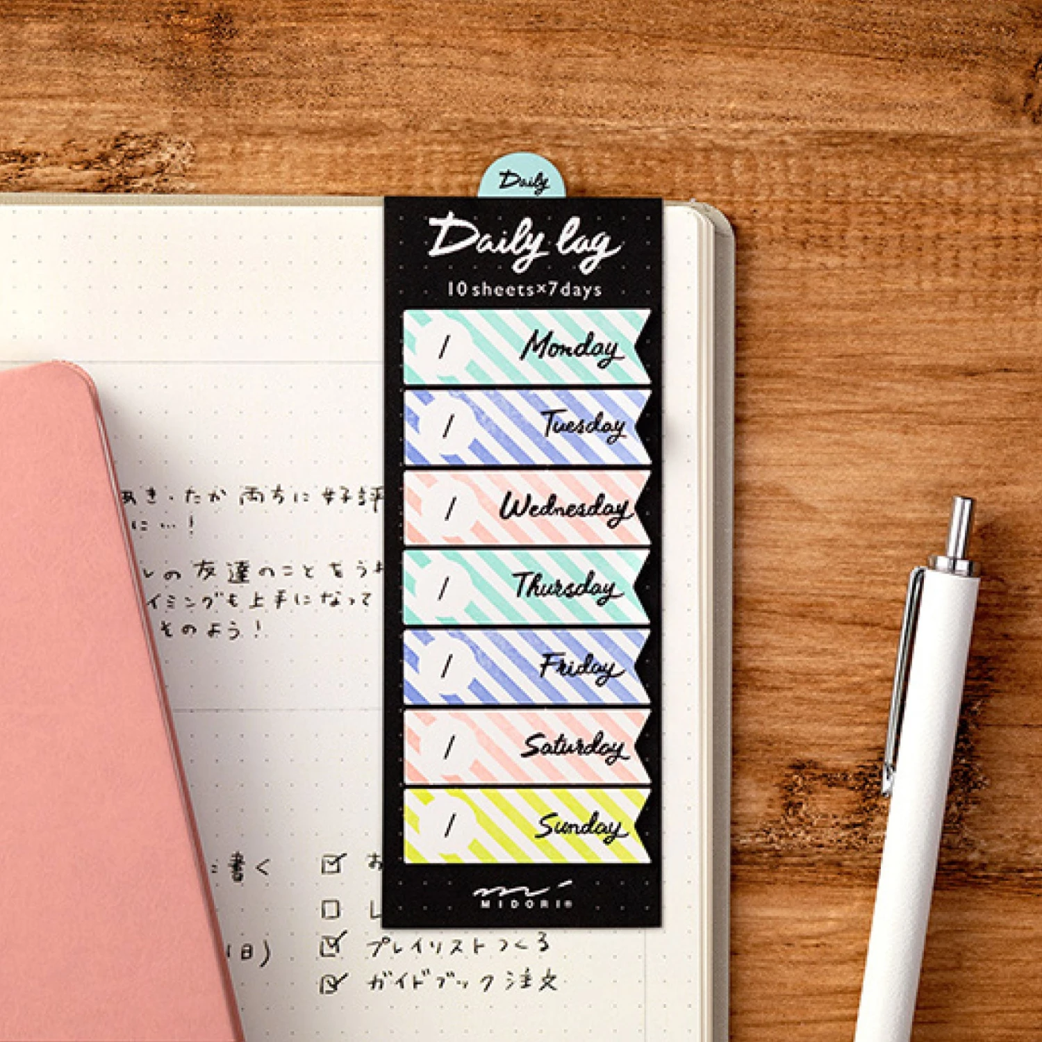 The Midori Daily Log stickers are perfect for keeping your journal organised, while adding a touch of colour and style. They can be used in a notebook, journal or planner to highlight important dates or notes.Â
