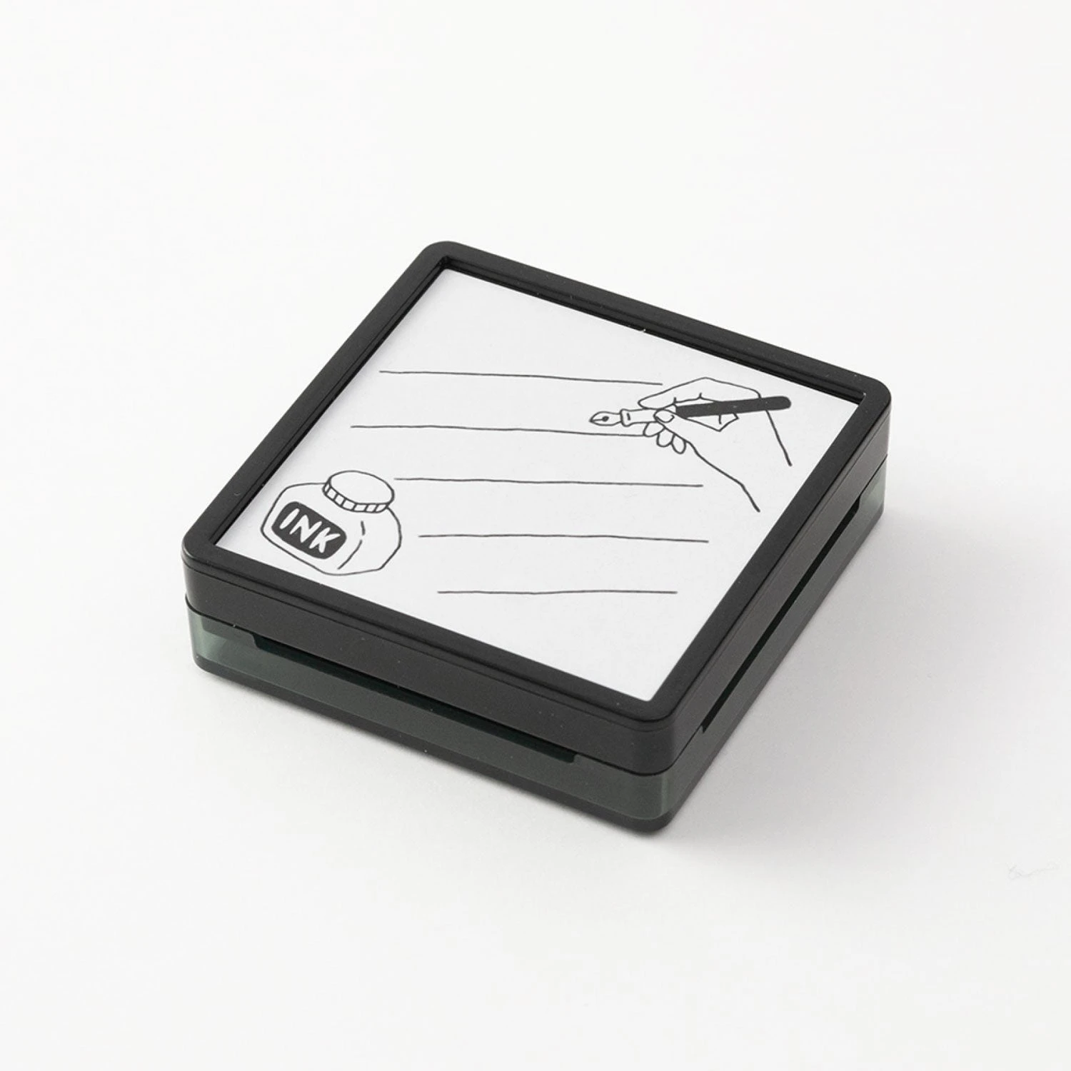 The writing Midori self-inking stamp is perfect for decorating, organising and keeping track. The design has space to fill in tasks, lists or notes and can be coloured in using the Midori paintable brush pens as the oil-based, black ink is waterproof.