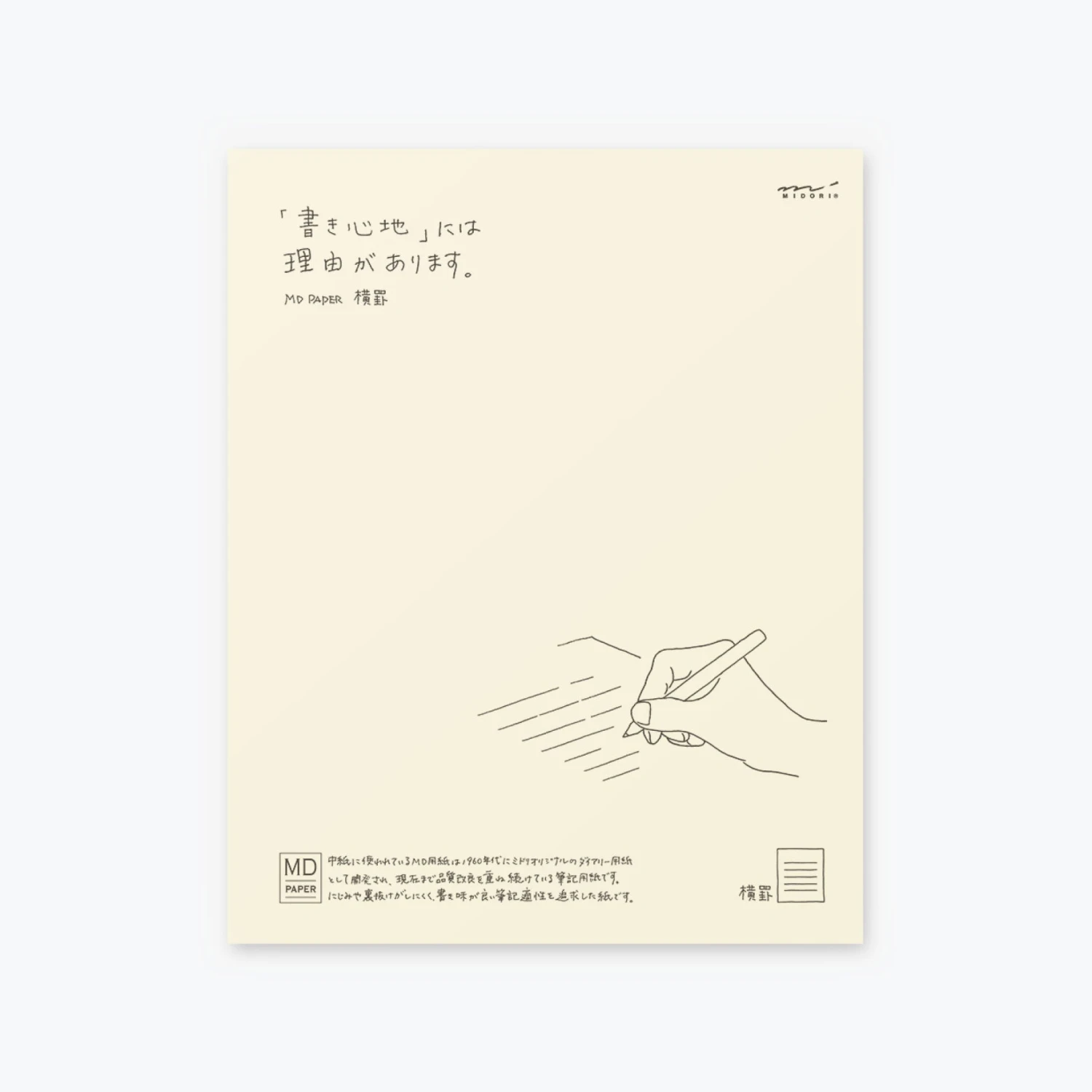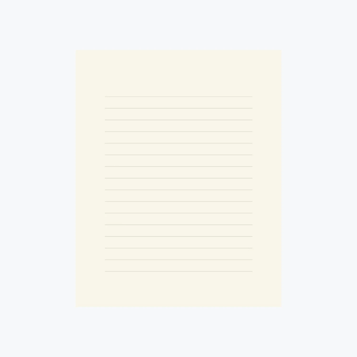 Instead of the standard B5 size, the Midori Letter Pad is designed in a unique Midori size that is based on the average handwriting size when writing letters and ruled lines at just the right spacing for natural line breaks. The lines themselves are a refined light grey to provide a guide without being too obtrusive.