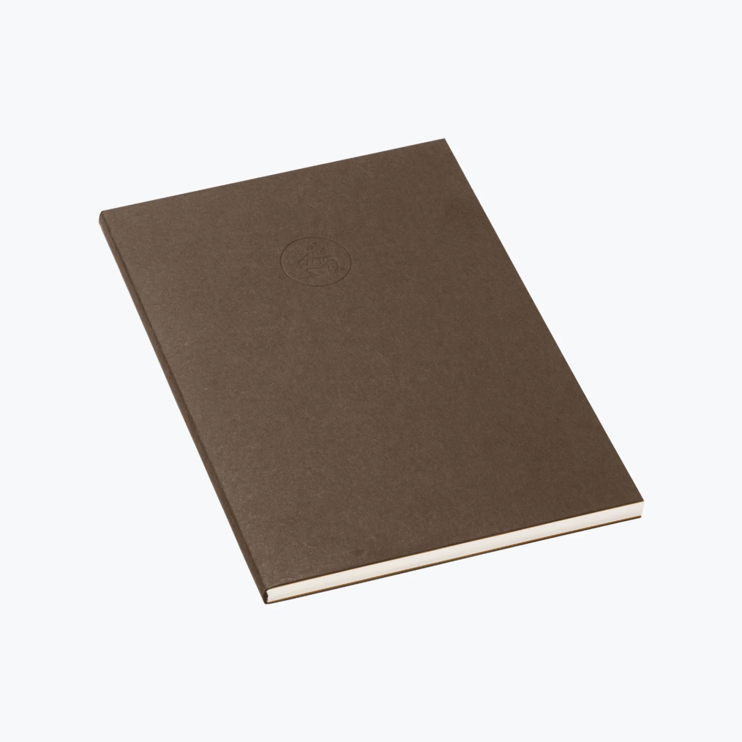 This notebook has a dark brown cover with the Jacques Herbin logo of a ship. The interior sleeves feature Jacques Herbin’s signature amber lining. At the back of the notebook, there is a pocket that houses a blotter card. The back cover of the notebook is embossed with “Le Monde au fil de l’encre”, which translates to “The world of ink”.