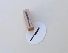 Material: varnished beech with motif sticker, the rubber stamp is mounted on a cushioning layer of foam.