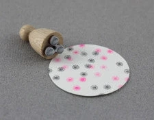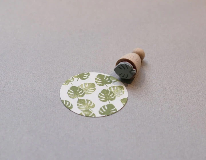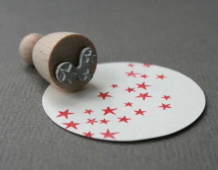 Material: varnished beech with motif sticker, the rubber stamp is mounted on a cushioning layer of foam.