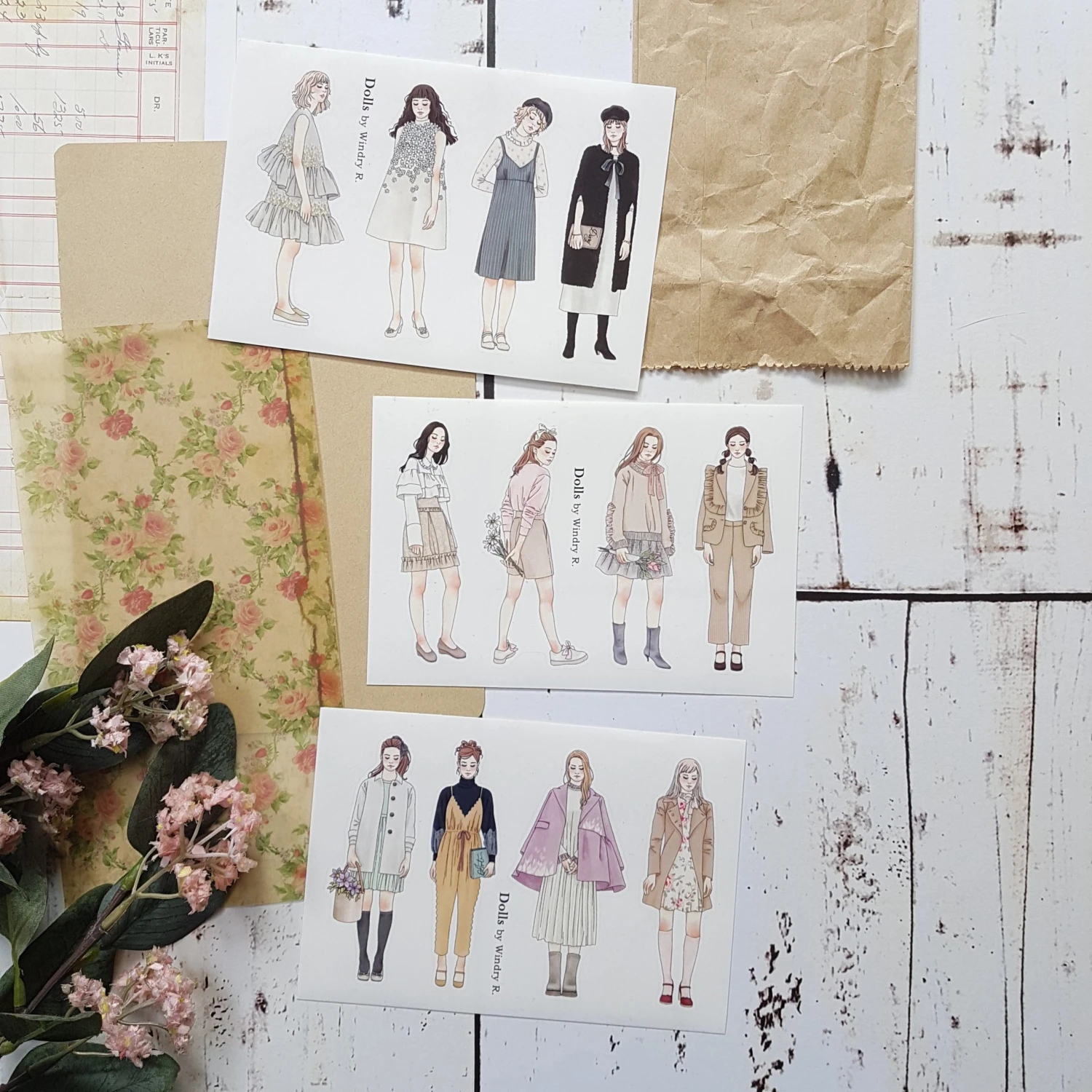 The Windry R. doll planner stickers are perfect for journaling. The pack includes 3 sheets with 4 stickers on each for a total of 12 doll stickers that are semi matte laminated and self-adhesive. Each sticker is approximately 9cm in height.
