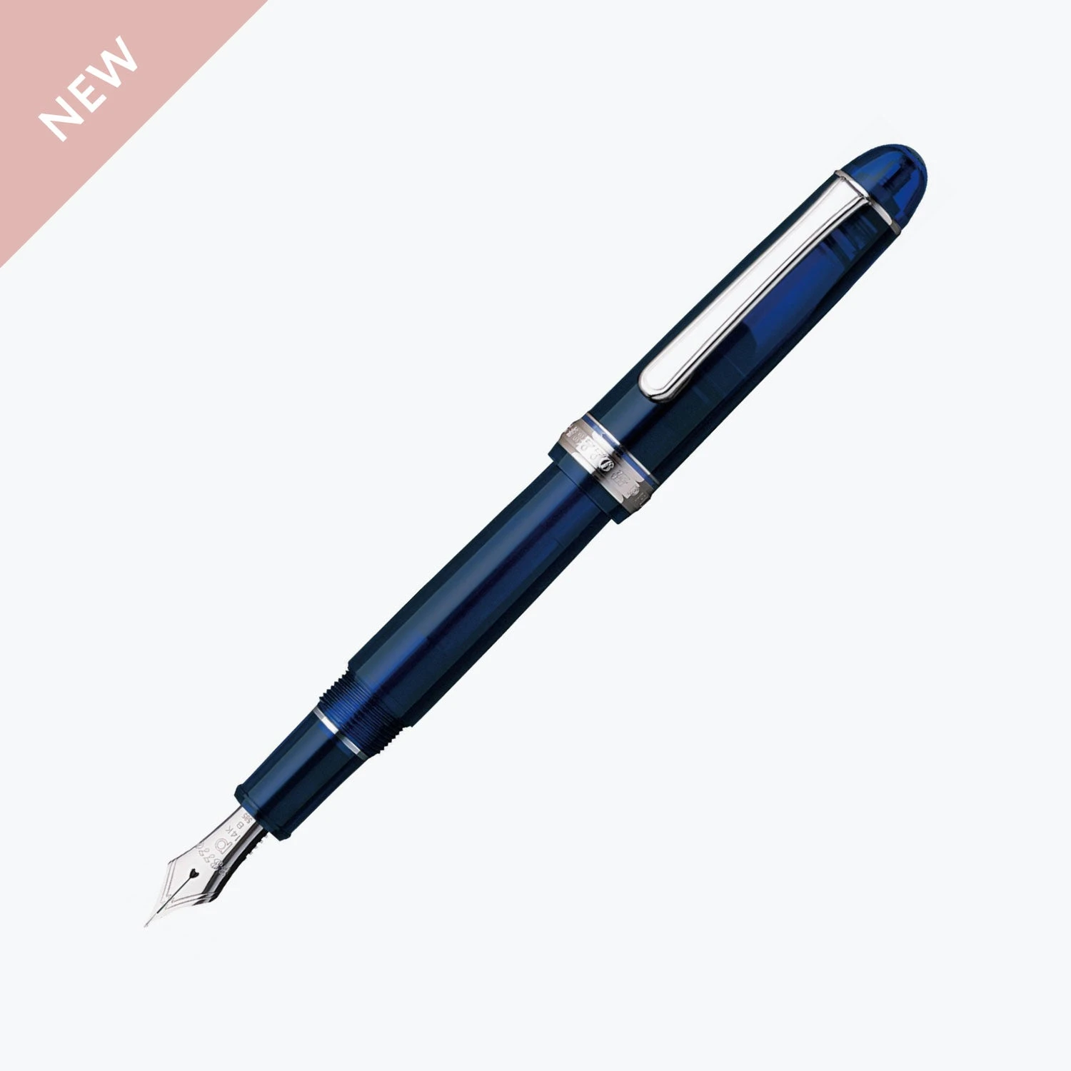 The Chartres Blue Platinum 3776 Century is a contemporary fountain pen with a sleek design, comfortable writing balance, smooth flow, and fast-drying ink. The translucent blue body is accented by rhodium trim.