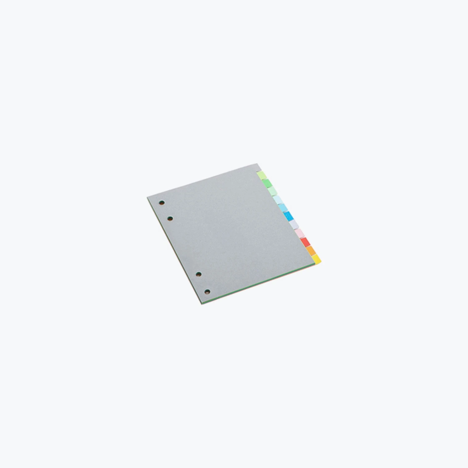 Index tabs are perfect for neatly labelling documents and folders to make the information easily accessible. This set features 12 light grey sheets, with coloured tabs down the right hand side.