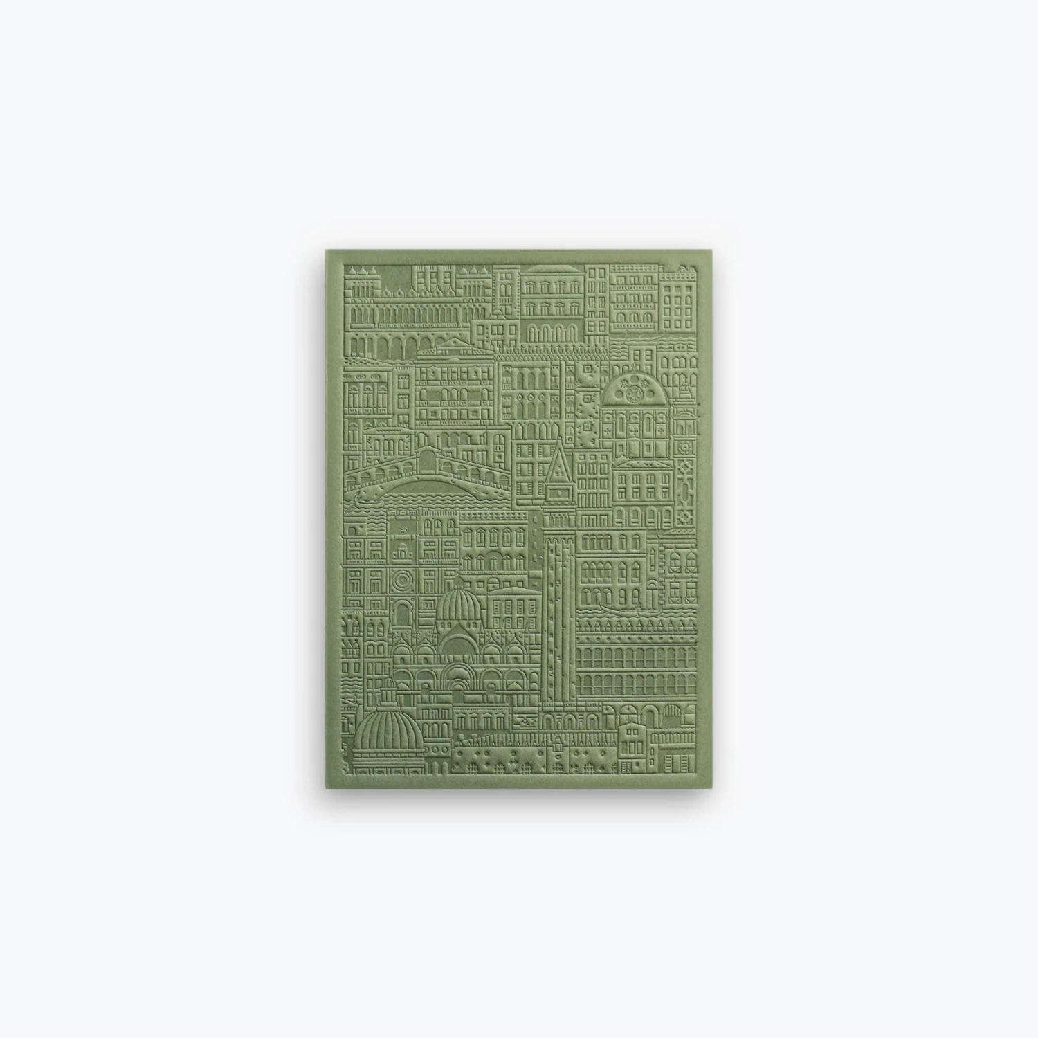 Venice, the city built on water, is intricately inscribed into this high-quality notebook. The green cover features iconic landmarks including the canals, Rialto Bridge, Saint Mark’s Basillica and Doge’s Palace – how many can you find?