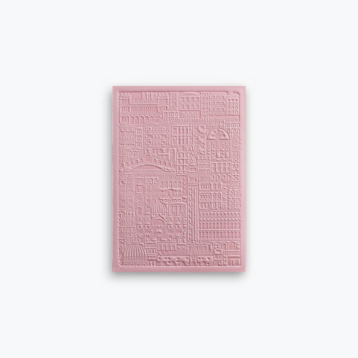 Venice, the city built on water, is intricately inscribed into this high-quality notebook. The pink cover features iconic landmarks including the canals, Rialto Bridge, Saint Mark’s Basillica and Doge’s Palace – how many can you find?