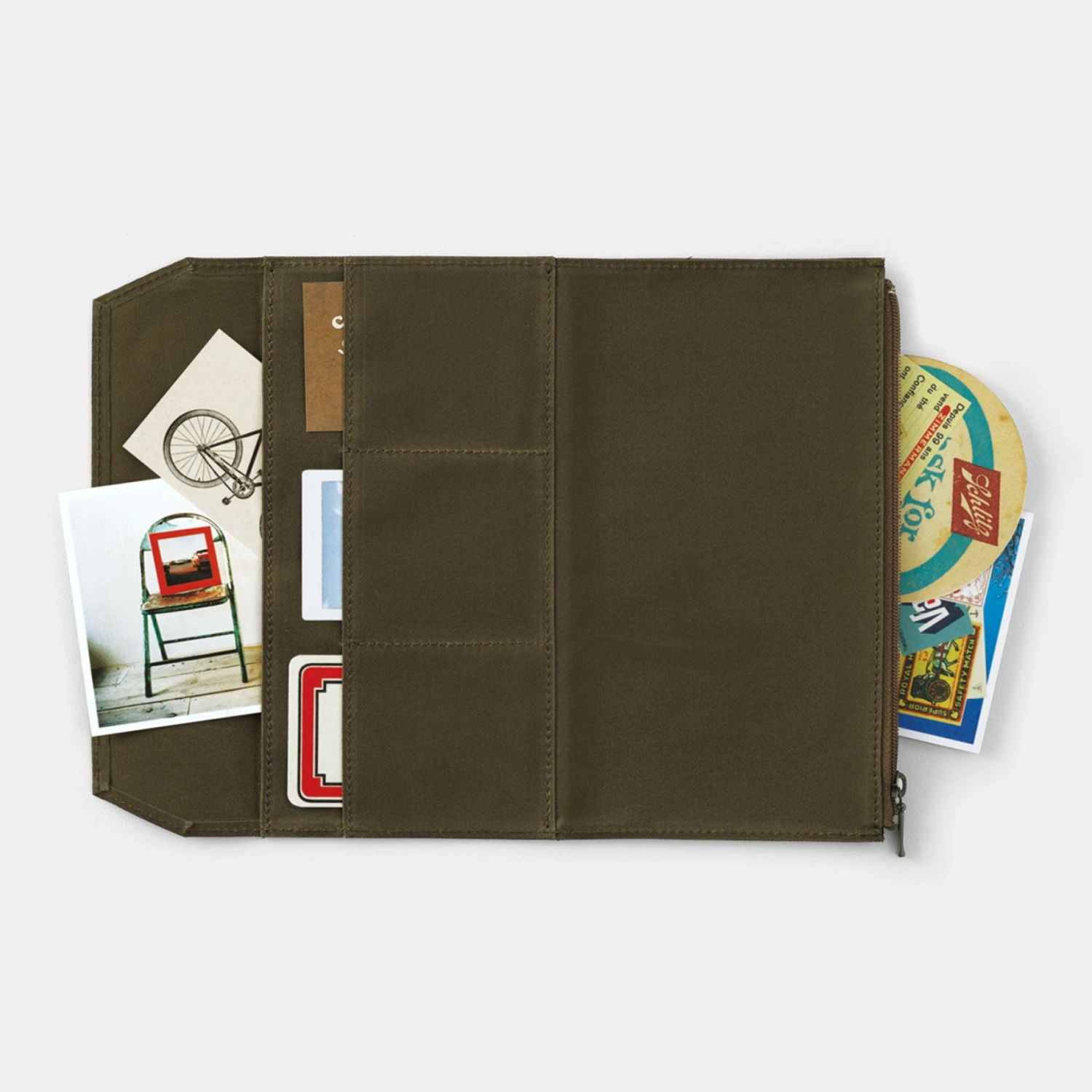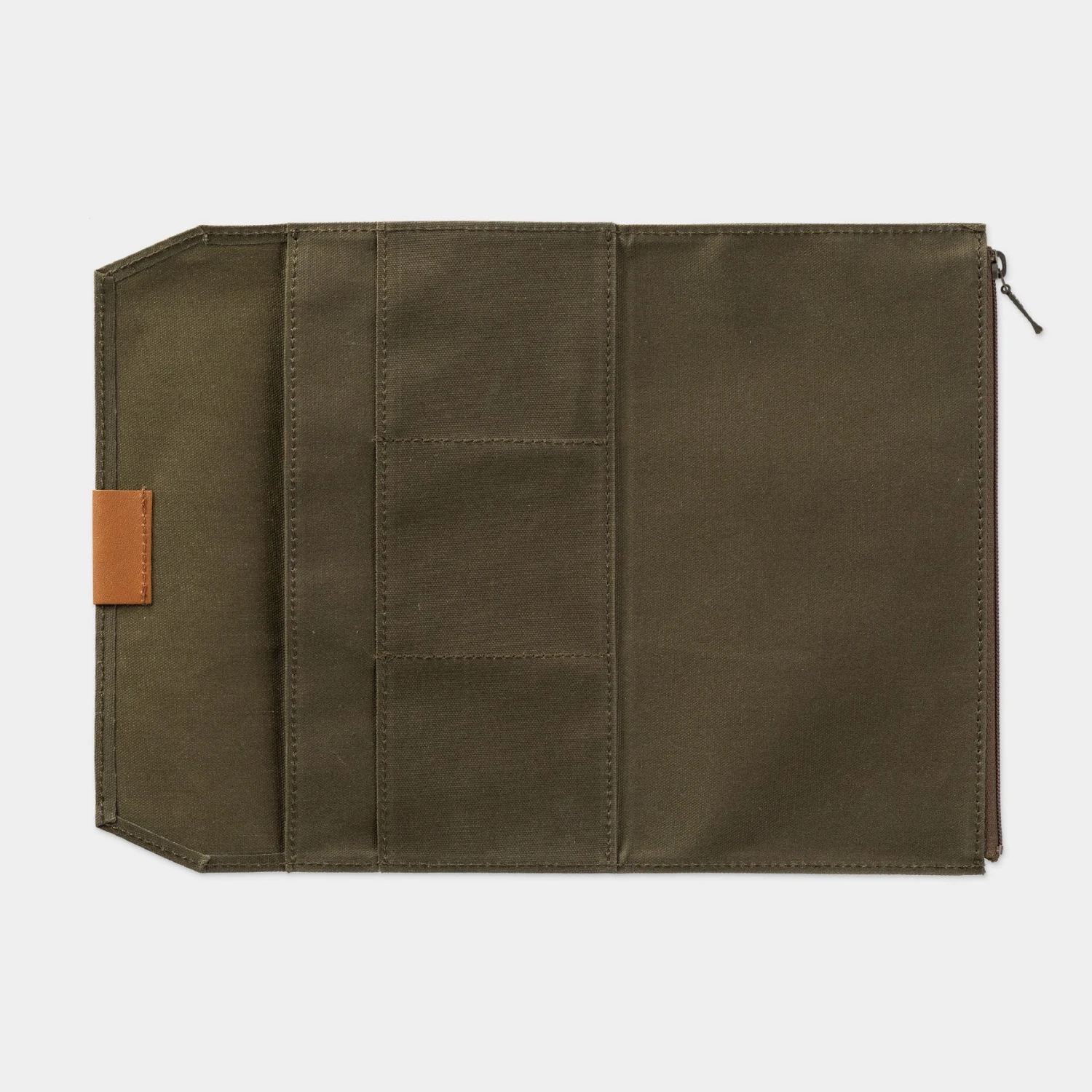 The zipper case is made by craftspeople in the suburbs of Tokyo from locally produced, paraffin-waxed fabric. The texture changes with use, taking on more and more character.